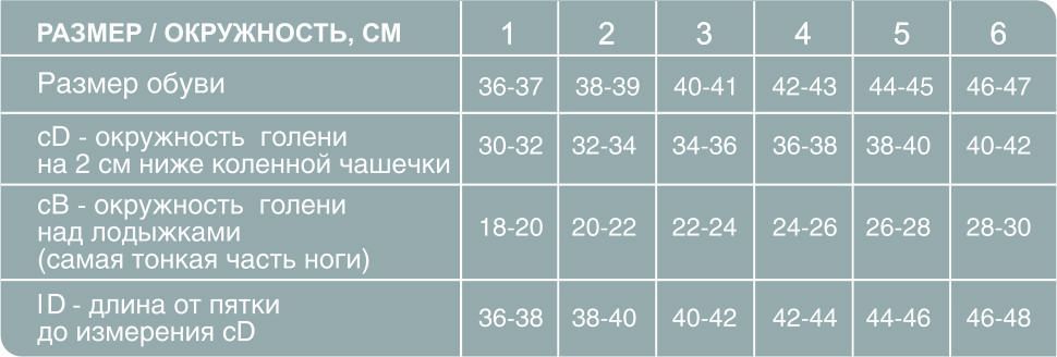 Точная градуированная схема распределения компрессионного воздействия: в области лодыжек – 100%, верхней трети голени – 70%, бедренной области – 40%;