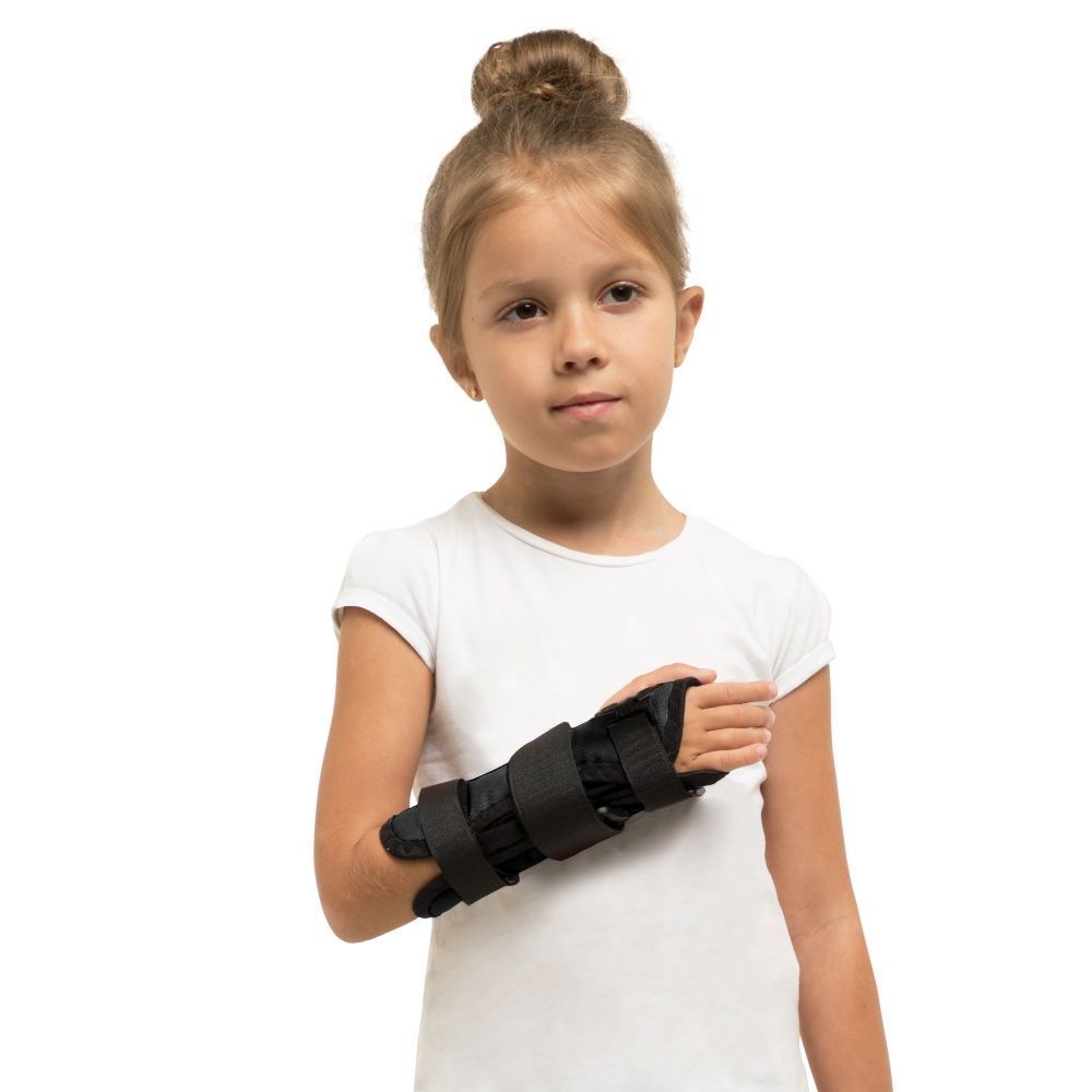 - Имеет съемную пластиковую шину анатомической формы длиной 17 см, которая проходит по ладонной поверхности