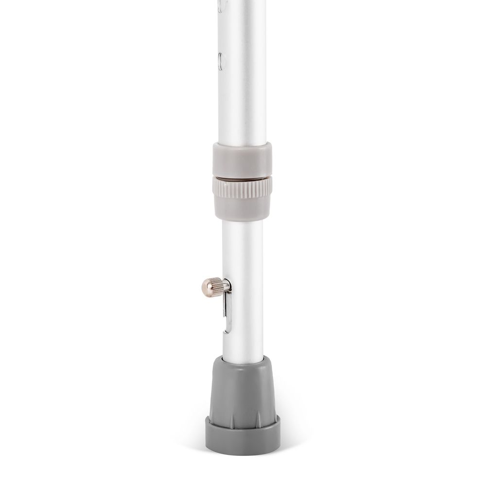 Регулировка высоты. Костыль может использоваться людьми разного роста: его общая высота регулируется от 96,5 до 119,5 см с помощью кнопочного фиксатора.