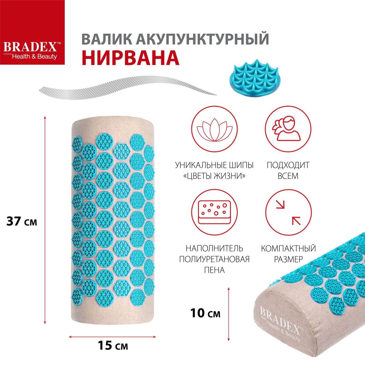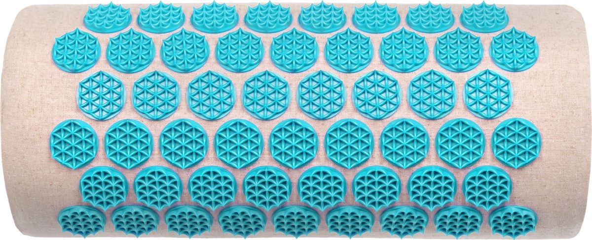 Акупунктурный валик премиум качества соединяет в себе древние принципы акупрессуры и современные технологии, а также выполнен из натуральных материалов – льна и хлопка. Использование натуральных эко-материалов делает валик хорошо вентилируемым, не позволяет впитывать запахи и влагу, препятствует появлению микроорганизмов. Упругий наполнитель из полиуретановой пены прекрасно держит форму и обладает отличной износостойкостью. Шипы акупунктурного валика Цветы жизни сделаны из безопасного для здоровья HIPS - пластика, их кончики не ломаются и не царапают кожу. Форма валика идеально подойдет для массажа шеи, кожи головы, поясницы или для акупунктуры ладоней и ступней.