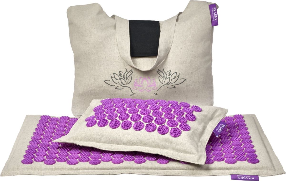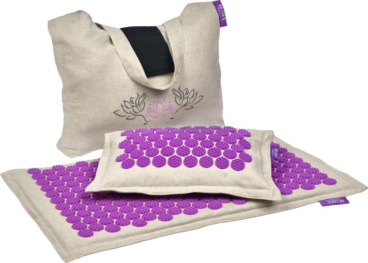 Акупунктурный набор премиум-качества отличается функциональностью и полностью натуральными материалами. Набор включает в себя массажный коврик, подушку и сумку. Цветы жизни – шипы уникальной формы – позволяют сделать массаж более приятным и комфортным, а наличие медицинского сертификата гарантирует эффективность и безопасность.
