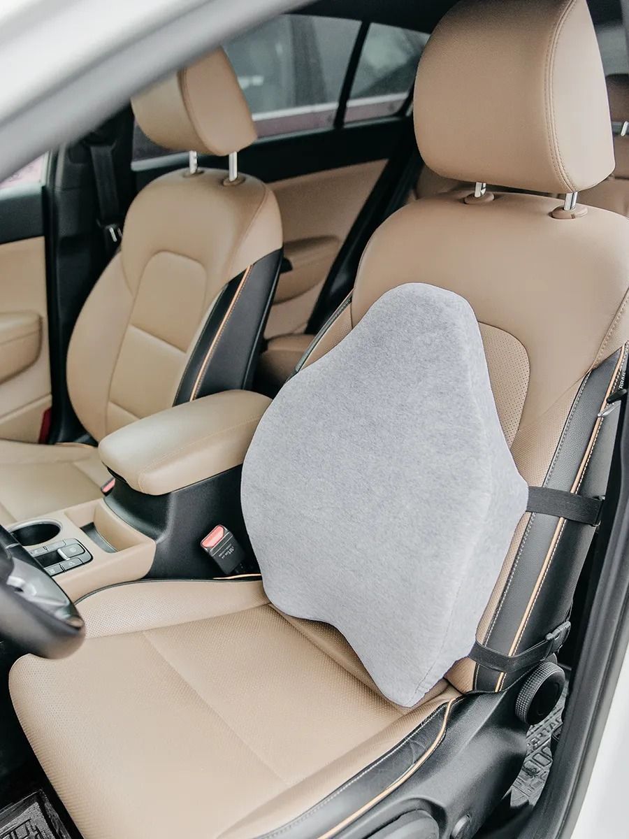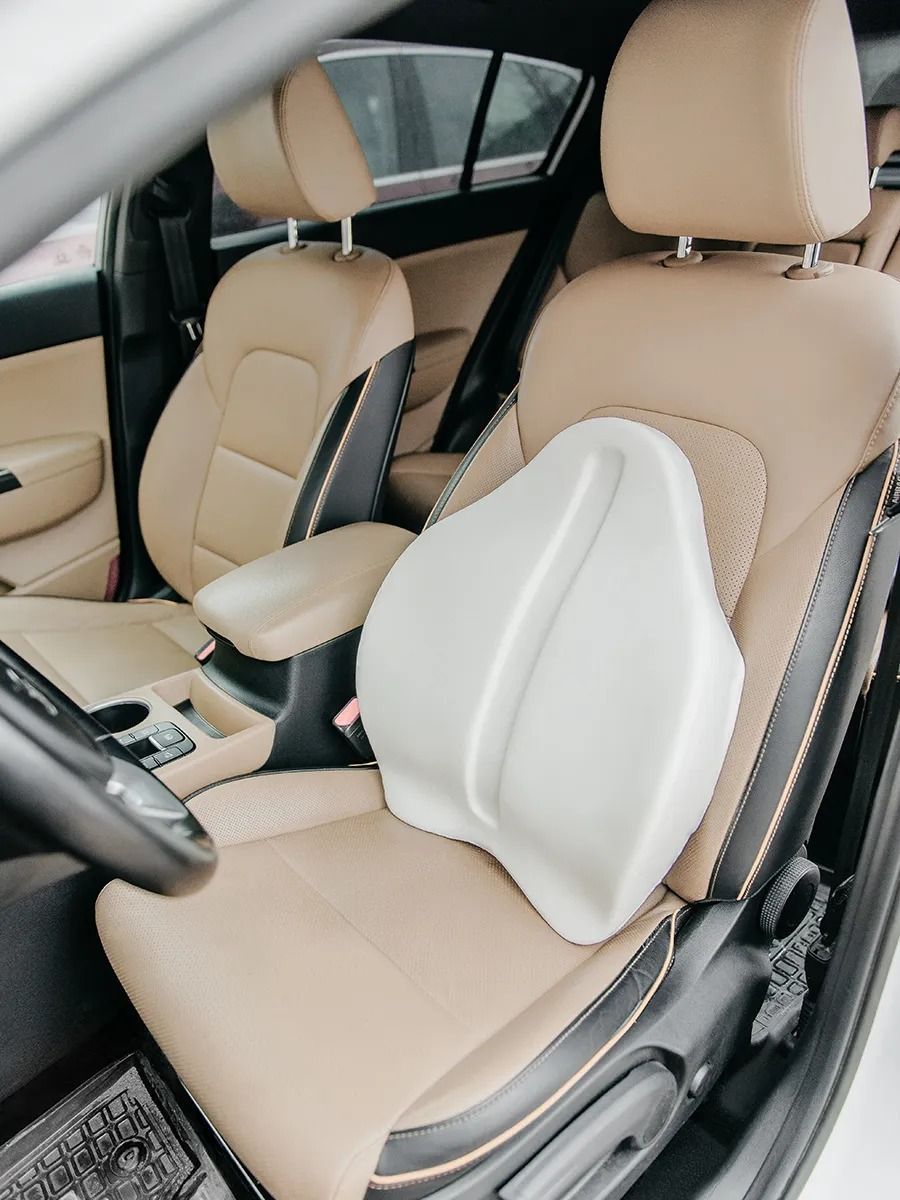 Подушка имеет специальную форму с продольным вертикальным вырезом посередине и выпуклыми частями по бокам. Поэтому она аккуратно поддерживает спину, помогает держать осанку ровно и избежать болей и усталости от длительного сидения. Так называемый «эффект памяти» материала и форма подушки, выполненная с учетом анатомического строения спины, создают бережную ортопедическую поддержку позвоночника, максимально подстраиваясь под изгибы тела и сохраняя такое положение. Материал подушки мягкий, но упругий, медленно восстанавливающий форму после сжатия. Данные свойства позволяют создать невероятный комфорт и держать спину в правильном положении. Подушка удобно крепится с помощью резинок с замками к любому креслу, офисному или автомобильному. Материал подушки гипоаллергенен, не впитывает в себя влагу, поэтому при попадании жидкостей подушка быстро высыхает. Уникальные свойства материала делают соприкосновение с телом невесомым, но при этом поддерживают спину, а также снижают уровень вибраций.