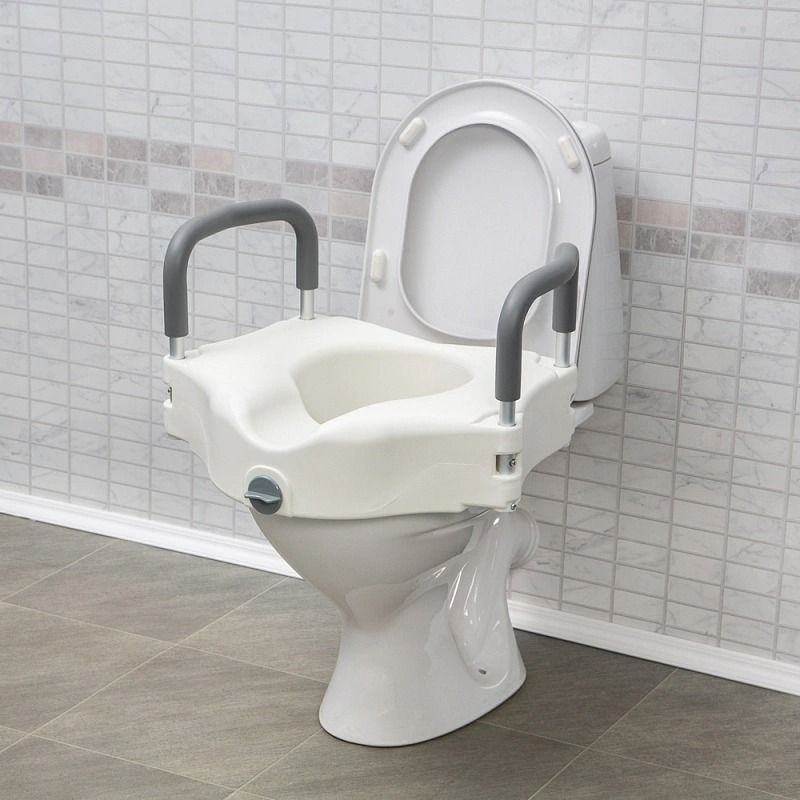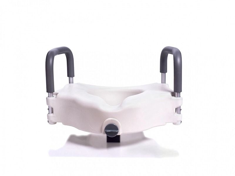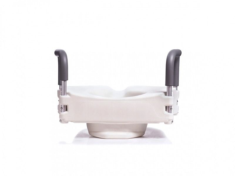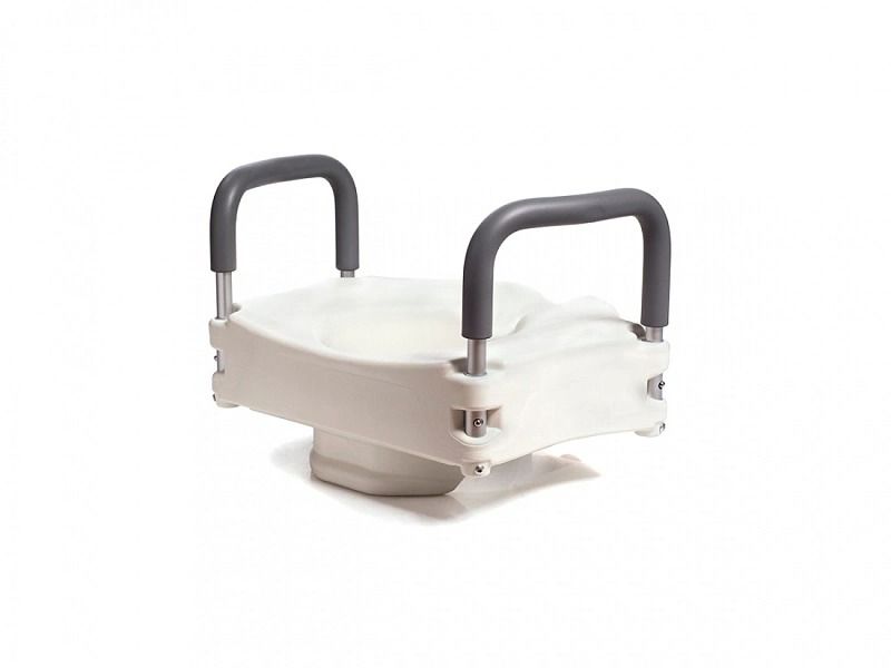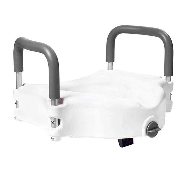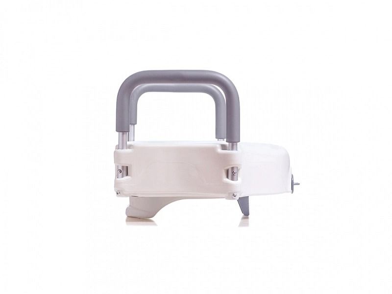 - Пластиковая насадка на унитаз со съемными поручнями увеличивает высоту унитаза