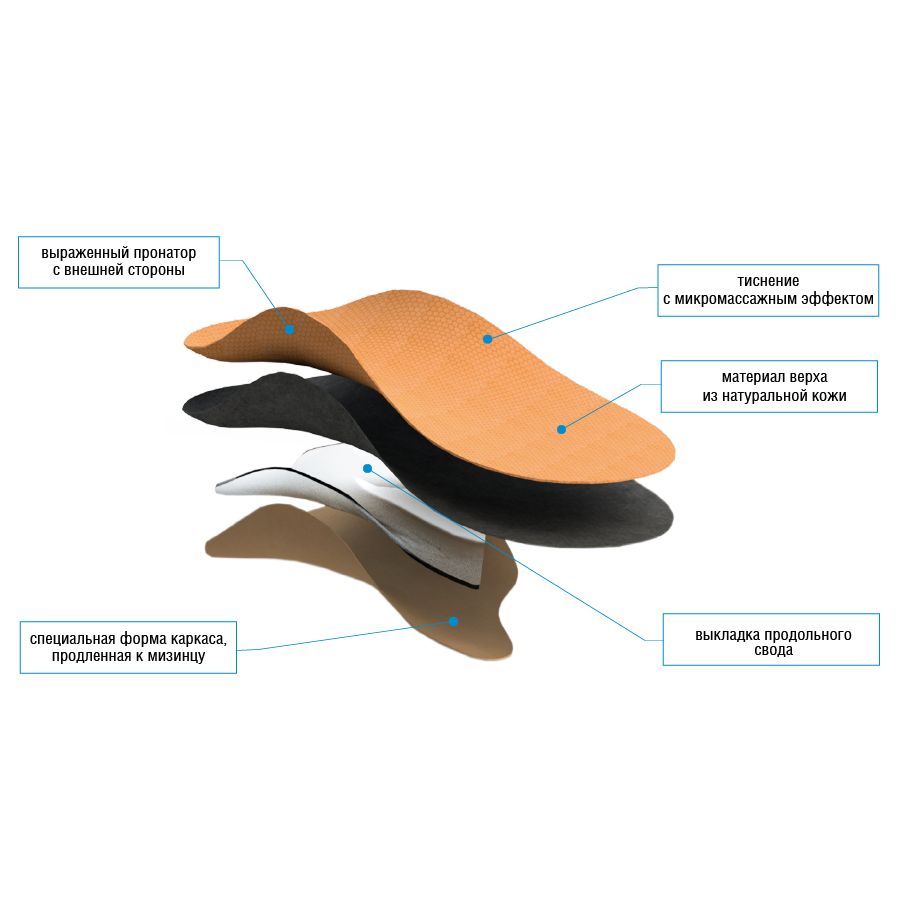 - Каркас имеет одинаковую выкладку продольного свода стопы с внутренней и наружной стороны, что препятствует избыточному приведению переднего отдела стопы.