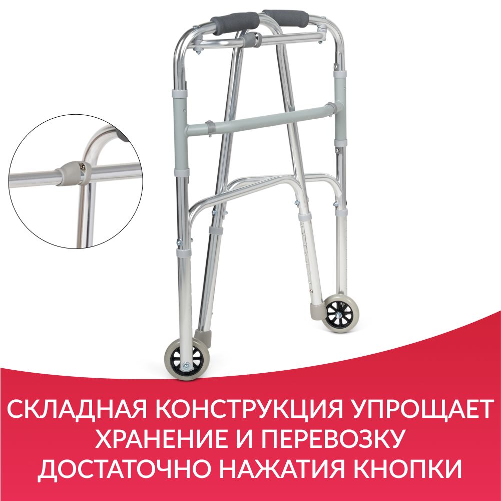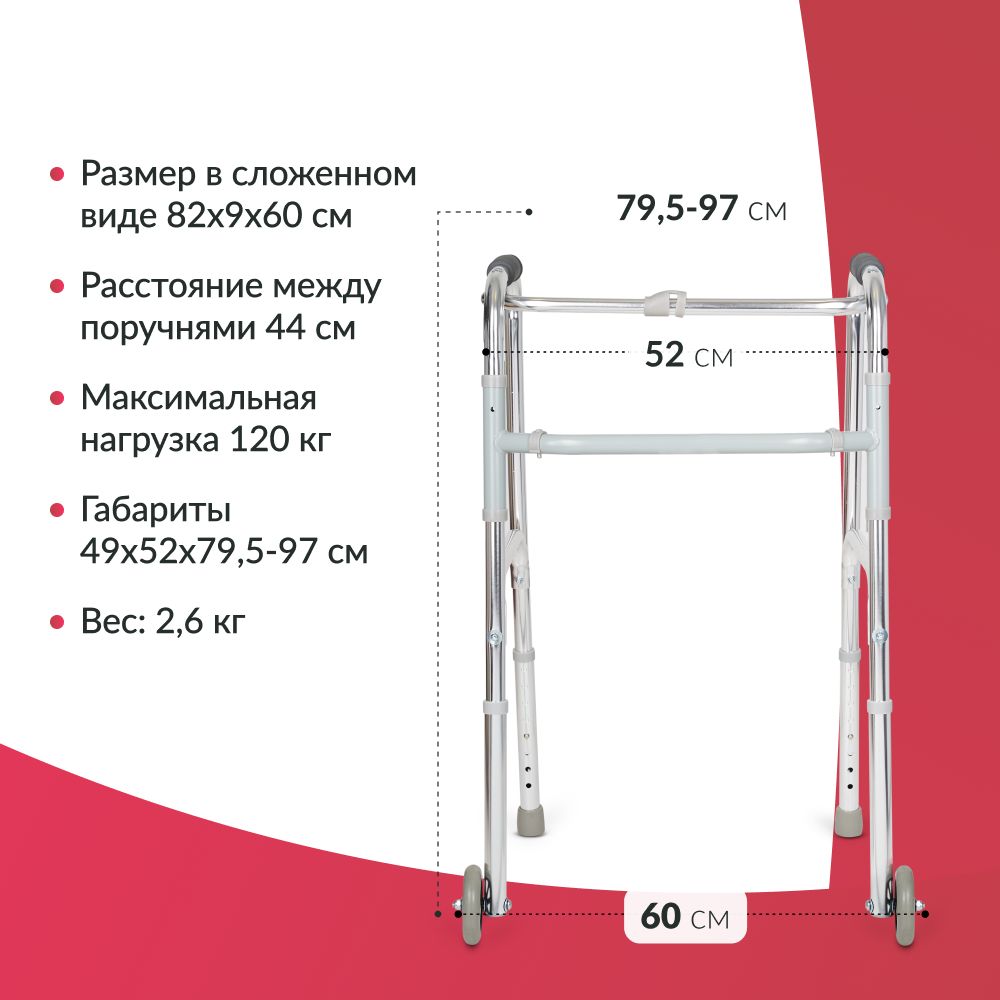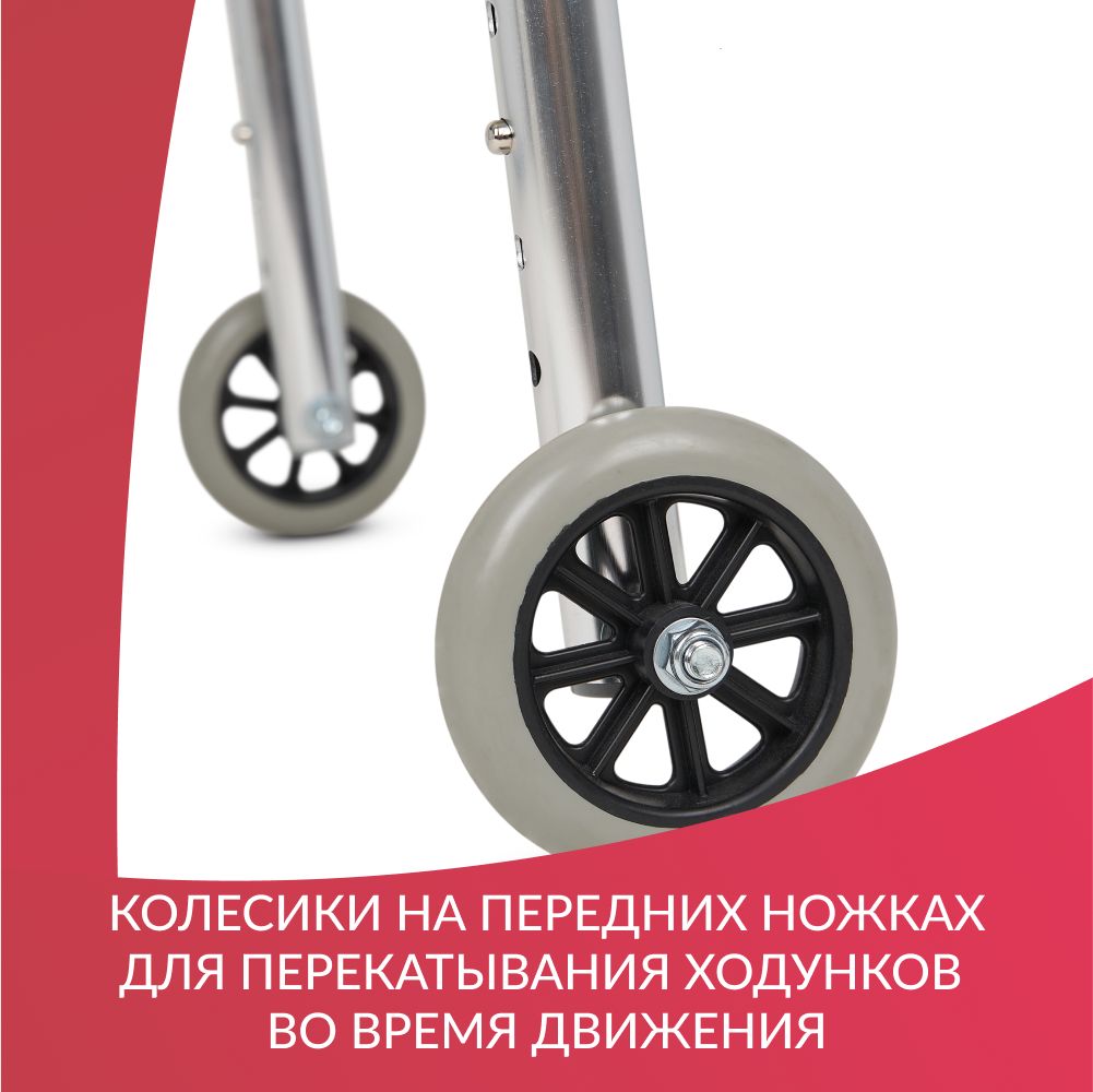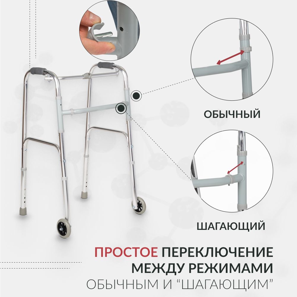 Прочные и удобные ходунки с возможностью регулировки по высоте, маневренными колесами на передних опорных ножках и шагающим режимом - отличный выбор для пользователей с ослабленными руками. Благодаря наличию колес можно передвигаться методом частичного перекатывания, не поднимая полностью ходунки при ходьбе.