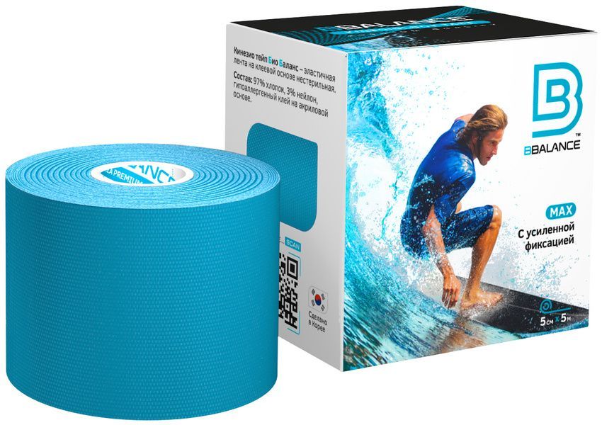 Кинезио тейпы с усиленным клеем BBalance Tape (BBTape) серии MAX подойдут для тейпирования участков тела, постоянно находящихся в движении или подверженным дополнительному трению (колени, локтевые суставы, лодыжки и т.д.), а также для тех людей, кто занимается водными видами спорта и много времени проводит в воде. На поверхность тейпа нанесен дополнительный гипоаллергенный клей на акриловой основе, благодаря чему тейп дольше держится и оказывает более длительный терапевтический эффект. С кинезио тейпами BBTape MAX Вы можете не опасаться, что тейп отклеиться, и заниматься активными тренировками в обычном режиме!