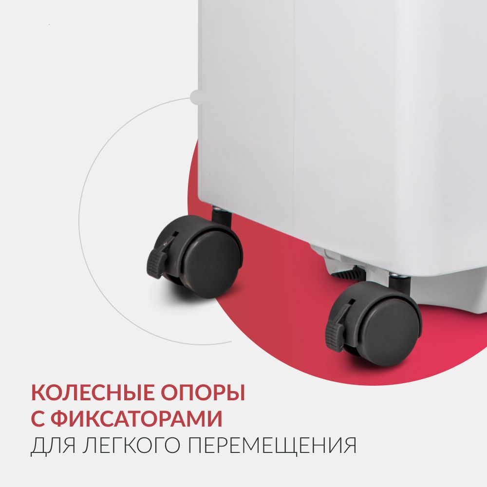 Легкое перемещение. Корпус концентратора кислорода выполнен из надежного ударопрочного пластика и снабжен удобными боковыми ручками, а также колесными опорами для легкого перемещения по дому.