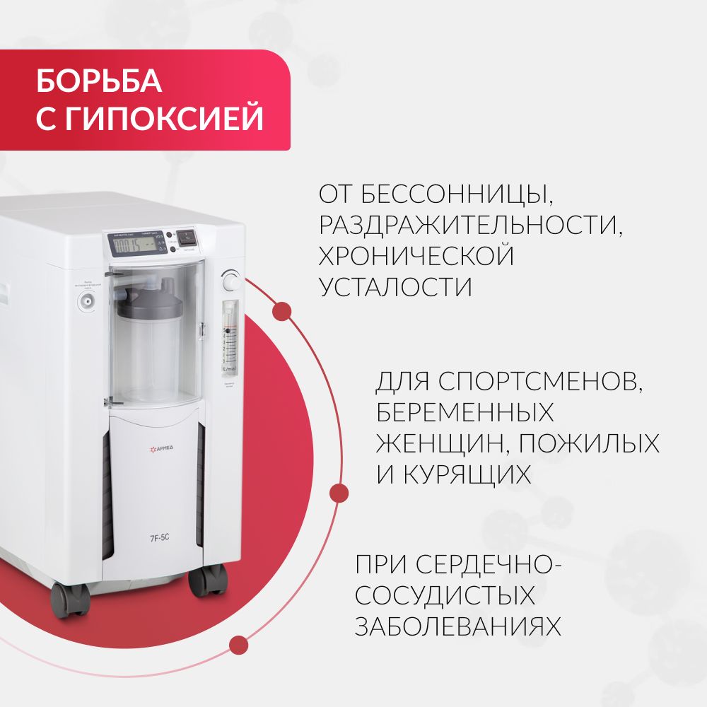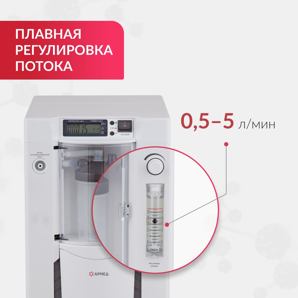 Производительность. Модель концентратора производит до 5 л воздушно-кислородной смеси в минуту. Концентратор Армед 7F-5C – прекрасный выбор для использования дома, в медучреждениях, кислородных барах, спортзалах, косметологических кабинетах. Эта модель станет любимым устройством детей, обожающих кислородные коктейли.