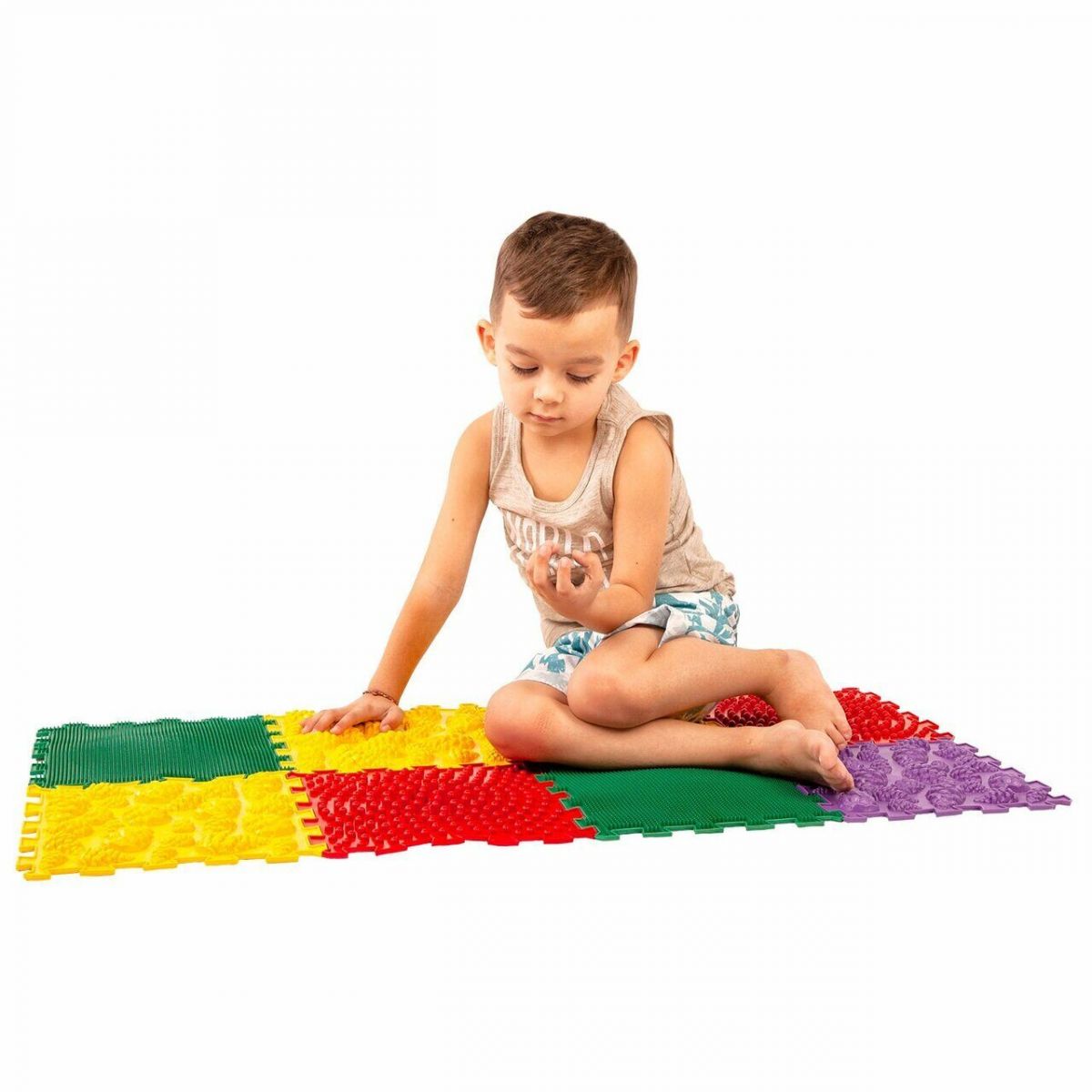 Модульное разноцветное исполнение ковриков позволяет собирать единую яркую дорожку для занятий разной длины и ширины. Дополнительно коврики помогают развивать логическое мышление, мелкую моторику и цветовосприятие.