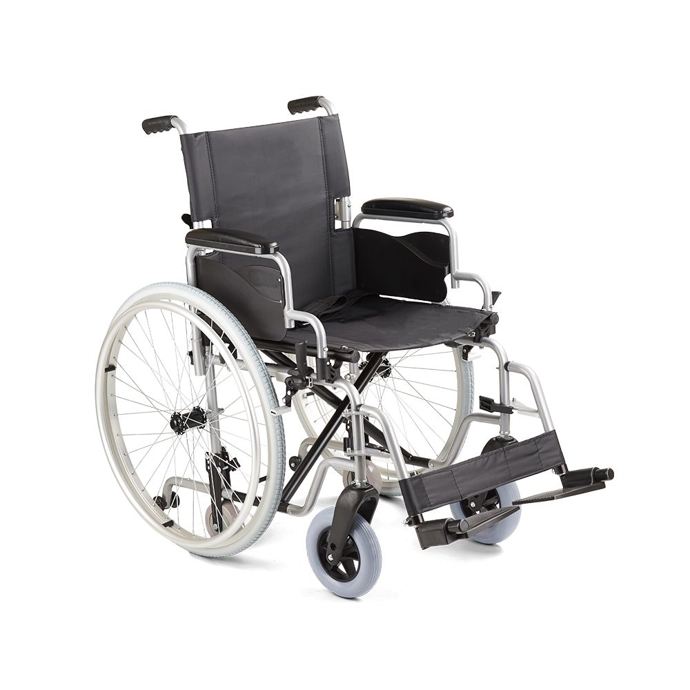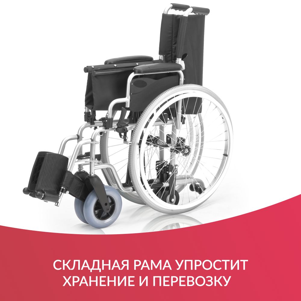 Рама коляски облегченная, изготовлена из прочного алюминия. Задние колеса снимаются одним нажатием кнопки с каждой стороны: коляска встает на транзитные колеса и проходит в узкие проемы и лифты. Спинка и рама кресла складываются для удобства транспортировки и хранения.