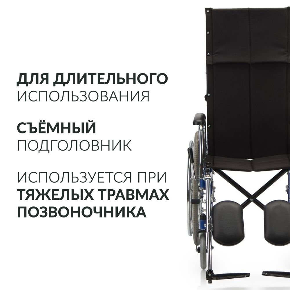 Приведите спинку кресла в горизонтальное положение, установите съемный подголовник и поднимите подножки – кресло превратится в удобную кушетку для отдыха. Эта возможность в разы упростит жизнь парализованных и тяжелых пациентов.