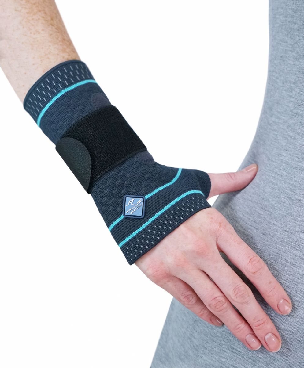 Плосковязаный бандаж со съёмными элементами фиксации (ремнем и ребром жесткости - шиной) и мягкой зоной в области большого пальца подходит для разных этапов лечения и профилактики заболеваний и травм лучезапястного сустава. Может обеспечивать умеренную и/или легкую фиксацию. Мягкий микромассажный, компрессионный и проприоцептивный эффекты ускоряют процесс реабилитации.