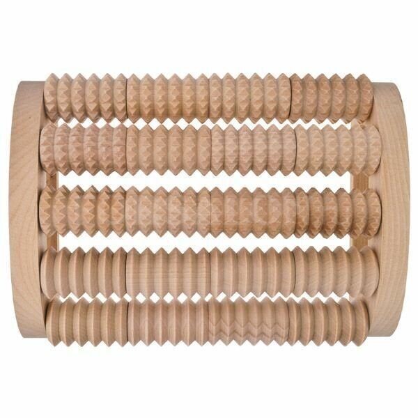 Массажер из натурального дерева с вращающимися элементами. Позволяет снимать мышечное напряжение и усталость спины, может использоваться на других зонах тела. Благодаря удобной конструкции позволяет делать самомассаж различных частей тела