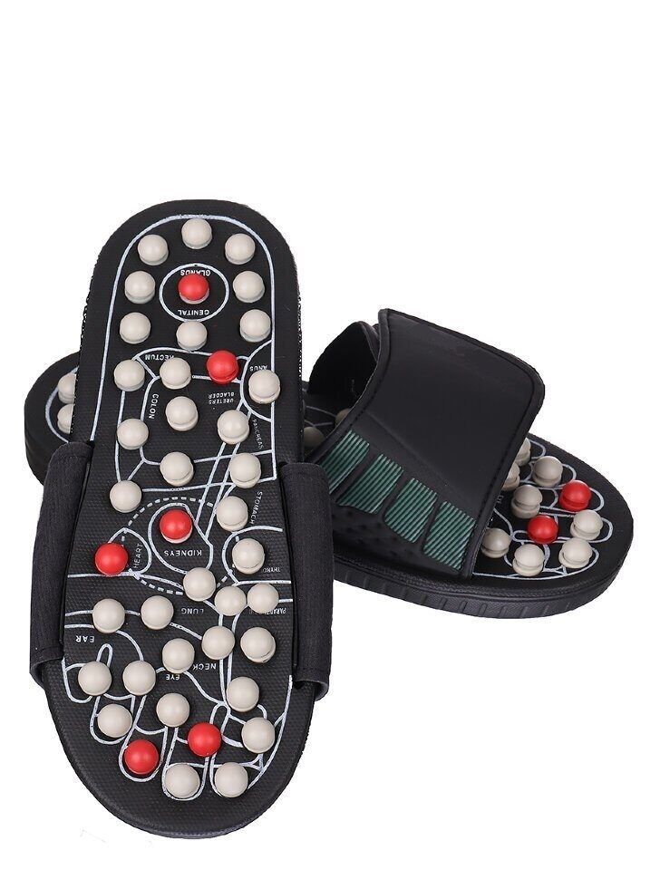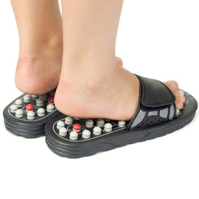 Массажные тапочки самый простой и доступный способ массажа ног в домашних условиях. Благодаря особой конструкции тапочек осуществляется качественный массаж расположенных на ногах акупунктурных точек, через которые оказывается воздействие на весь организм. Специальная конструкция тапочек позволяет осуществлять динамический массаж акупунктурных точек, вырабатывать правильную осанку, поглощать ударные нагрузки на колени.
