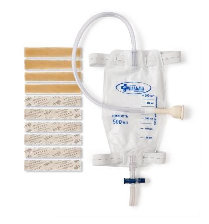 В комплект изделия входят 10 улавливателей мочи, 10 герметизирующих полосок и мешок-мочеприемник с двумя лентами-застежками. Таким образом, комплект рассчитан на 10 дней.