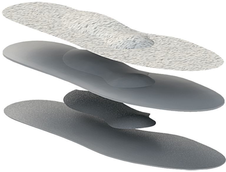 В конструкции используется углесодержащий вспененный пластик Carbosane. Он придаёт стелькам прочность и упругость, обладает амортизирующим эффектом. Изделие снижает нагрузку на все отделы стопы во время ходьбы, бега, прыжков. Материал имеет бактериостатические свойства, нейтрализует неприятный запах.