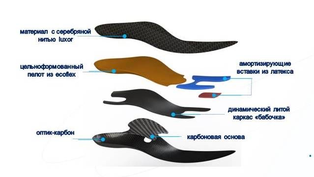 - Динамический литой каркас на основе карбона – физиологическая биомеханика шага и тренировка мышц стоп
