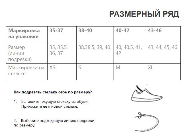 - Каркас из полипропилена обеспечивает бережную поддержку продольных сводов. Флокированная отделка - тонкие волокна поверхностного слоя для создания мягкой бархатистой текстуры - повышает комфорт и снижает трение стельки об обувь.
