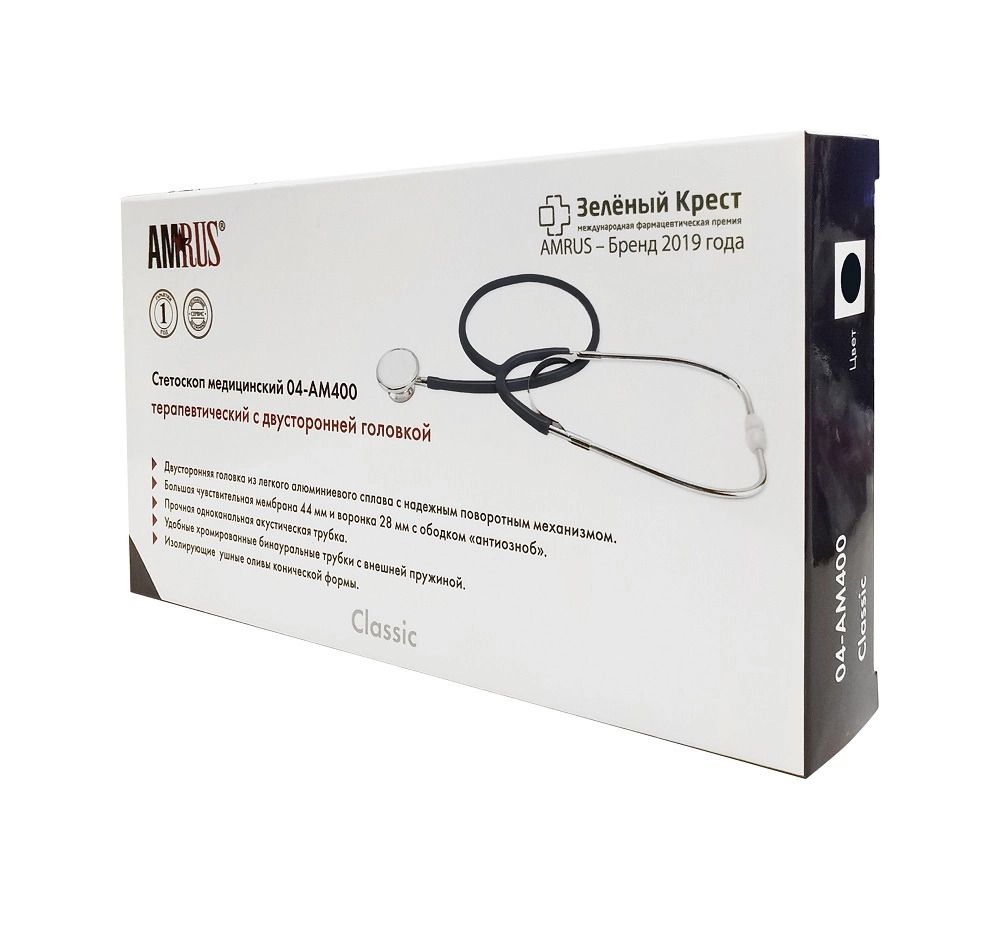 Стетоскоп предназначен для аускультации сердца, легких и других внутренних органов у взрослых пациентов. Облегченная двусторонняя головка снабжена надежным поворотным механизмом. Чувствительная мембрана 44 мм и колокол (воронка) 28 мм с ободком «антиозноб». Прочная одноканальная акустическая трубка хорошо изолирует от внешних шумов. Удобные хромированные бинауральные трубки с внешней (наружней) пружиной. Ушные оливы конической формы.
