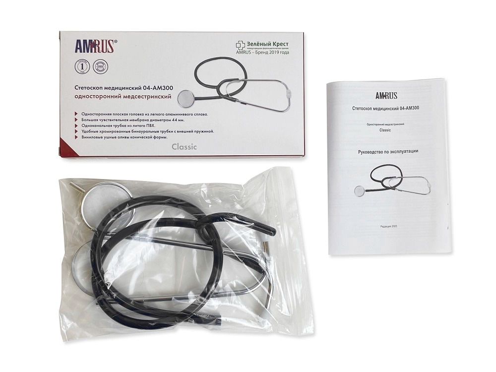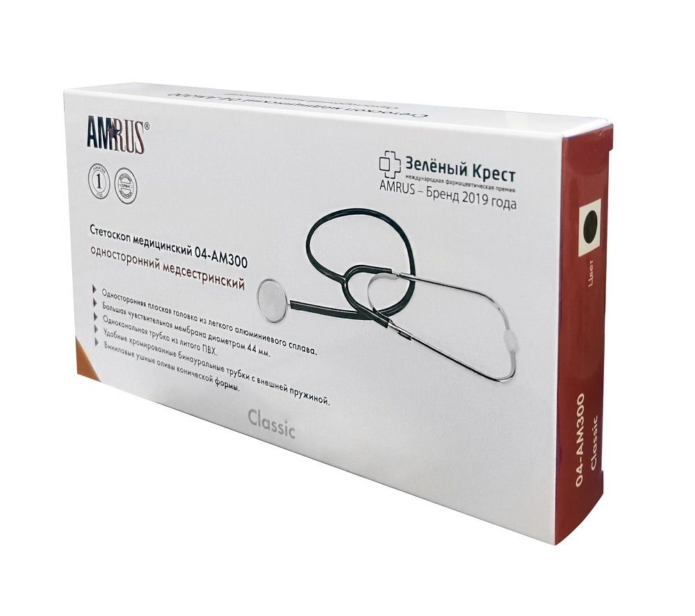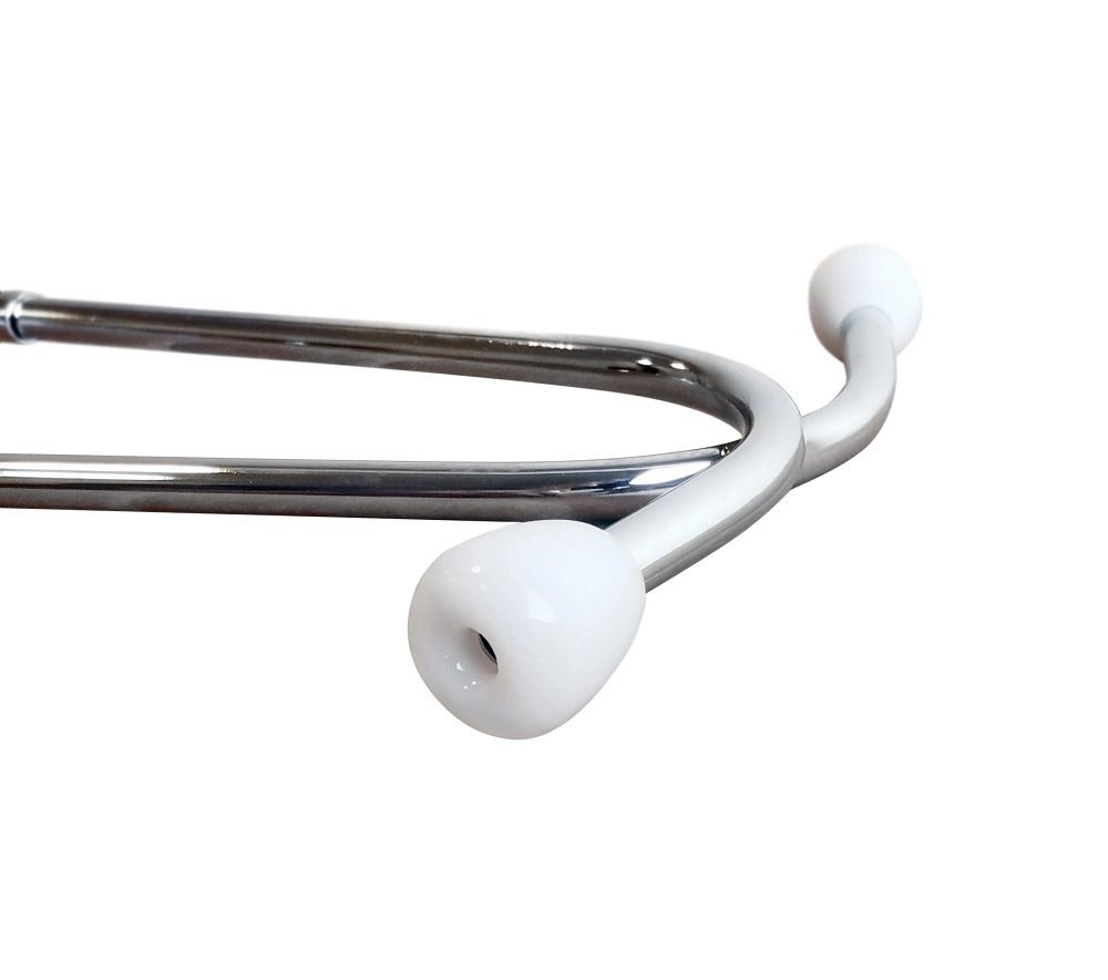 Стетоскоп предназначен для аускультации тонов сердца при измерении артериального давления и первичном осмотре пациента. Облегченная односторонняя плоская головка имеет чувствительную мембрану диаметром 44 мм. Одноканальная трубка из литого ПВХ обеспечивает звукоизоляцию от внешних шумов. Виниловые ушные оливы конической формы белого цвета.