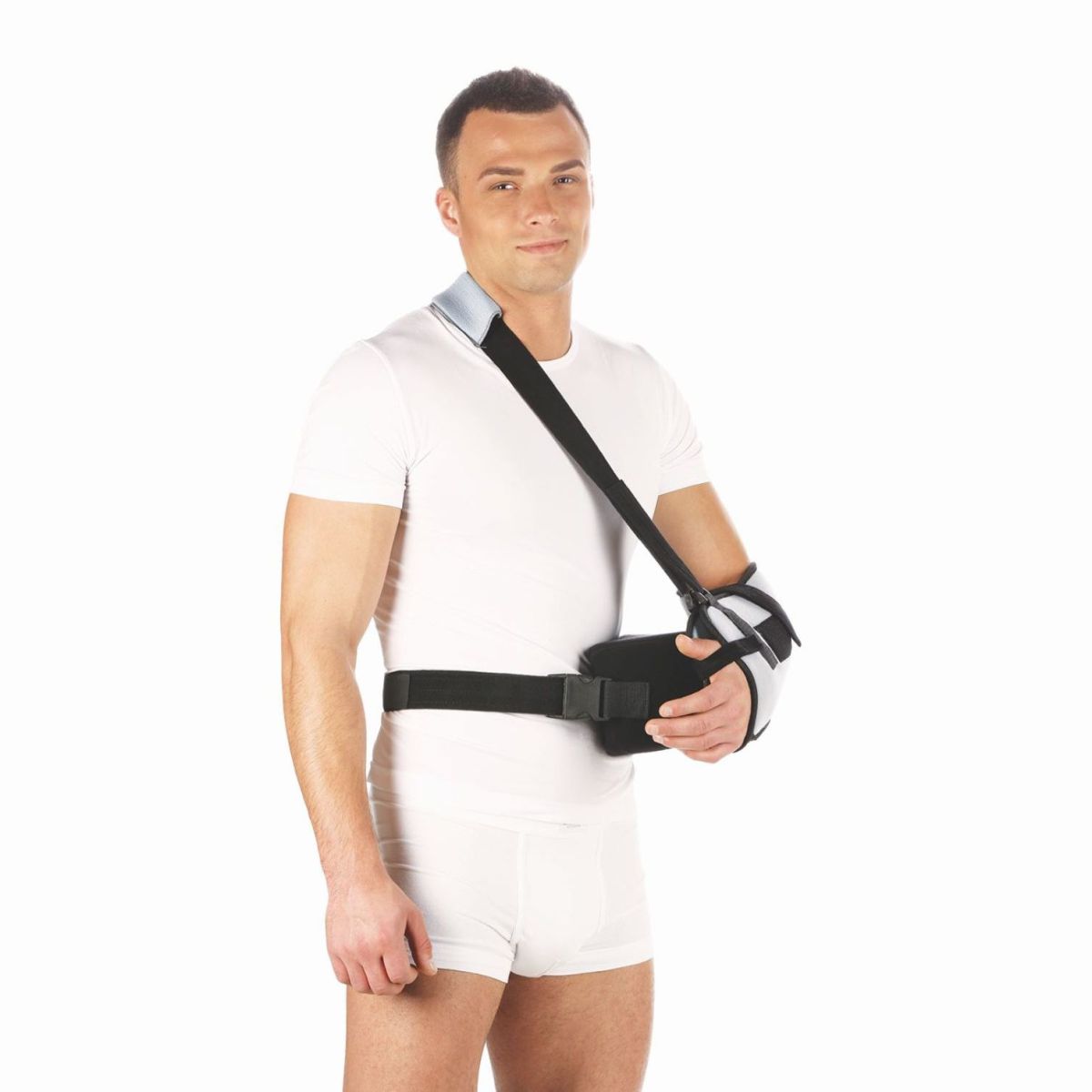Фиксирующий плечевой сустав бандаж с абдукционной подушкой обеспечивает фиксацию руки в необходимом положении с возможностью её отведения до 30 градусов. Продуманная конструкция бандажа обеспечивает практичность и лёгкость использования, а также способствует быстрейшей реабилитации и восстановлению после травм и оперативного вмешательства.