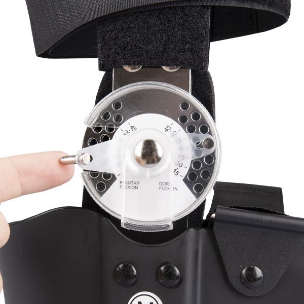 - регулировка угла подошвенного и тыльного сгибания стопы 0°- 45°, с шагом в 15°, при необходимости можно полностью иммобилизировать голеностопный сустав